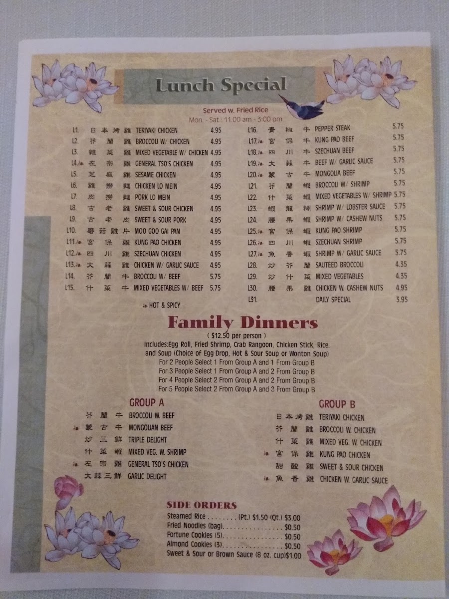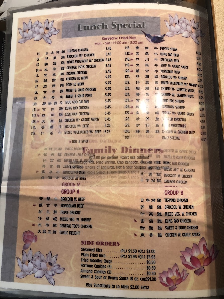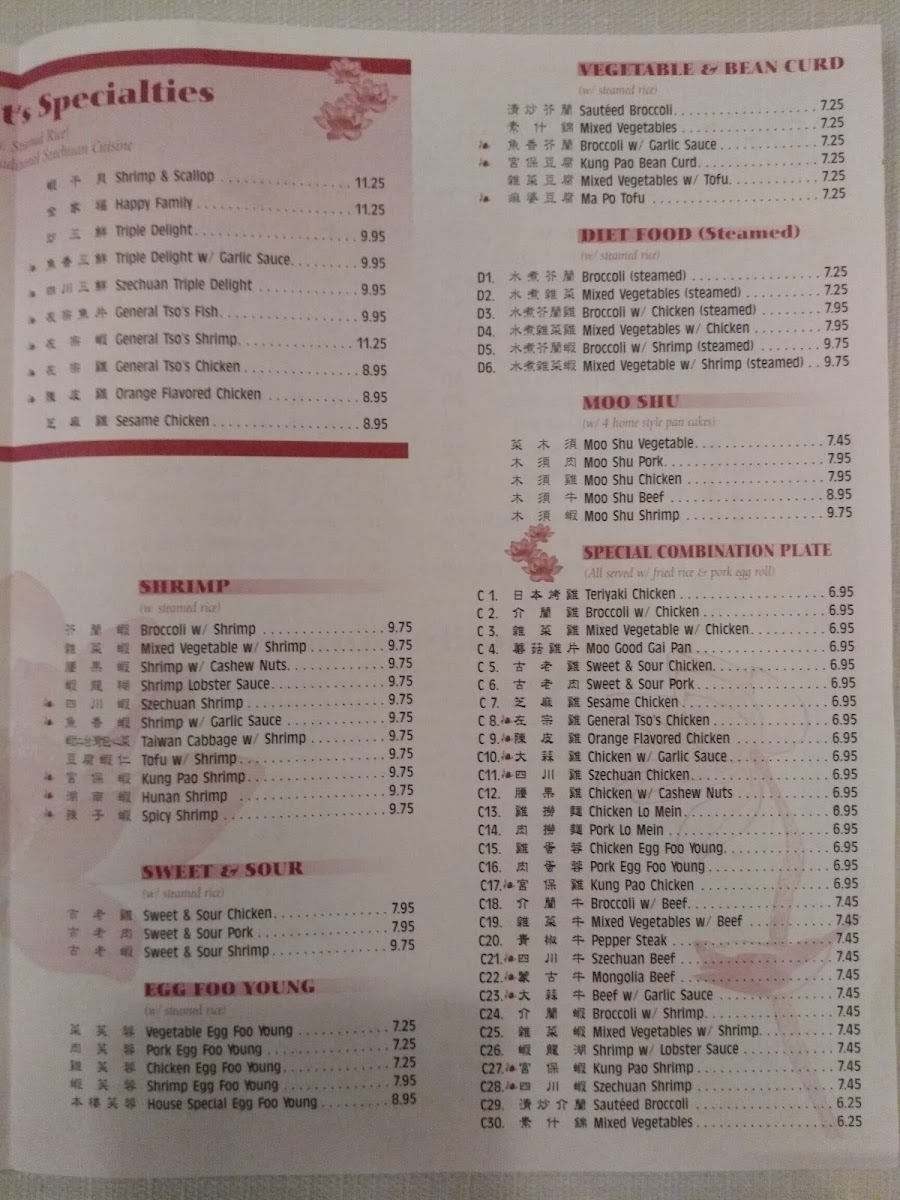 The menu features delectable options, with standout dishes like the Kung Pao Beef, Orange Flavored Chicken, and the beloved Sesame Chicken. Each dish is meticulously prepared, ensuring a perfect blend of flavors that delights both your palate and your wallet. For just $9.25, their Special Combination Plates offer an excellent value for lunch or dinner.